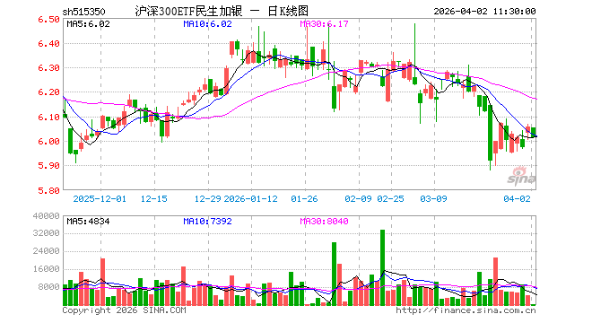 沪深300ETF民生加银(515350)跌0.73%,半日成交额1.63万元