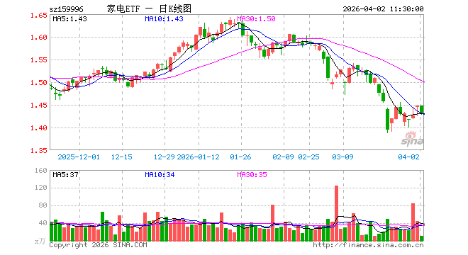 家电ETF国泰(159996)跌1.24%,半日成交额1621.79万元
