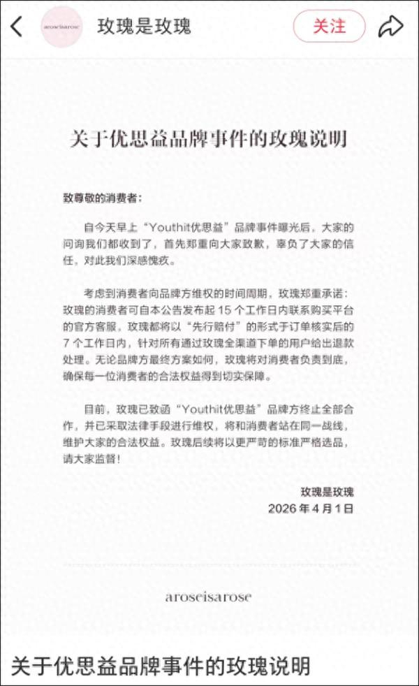 李若彤直播间微信公众号“彤享会”当天也发布致歉声明称,即刻启动“先行售后机制”,凡是在李若彤直播间和橱窗购买的“优思益”产品,无论日期,无论是否开封,请联系我们,订单将于当天立刻全额退款。