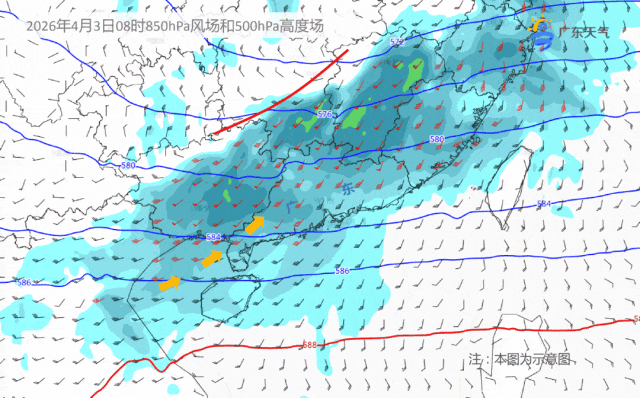预计,2日夜间起到4日(清明假期首日),高空槽东移,低涡切变快速东移南压,配合弱冷空气南下影响,广东又将迎来一次明显降雨过程:中北部市县有大雨局部(大)暴雨,南部市县多云到阴天,有中雷雨,大部分市县雷雨时伴有8~10级(局地11级)短时大风、冰雹和短时强降水等强对流天气。其中,4日白天中北部市县降水逐渐减弱。