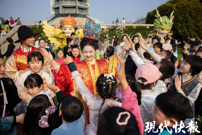 在南京大报恩寺遗址景区参加“马皇后的舞会”;在苏州博物馆欣赏仇英本《清明上河图》;到扬州瘦西湖畔赏琼花乘画舫……4月1日春假第一天,江苏各个网红城市的景区挤满了人,亲子家庭成为出游主力。玩中学、学中玩,孩子们在旅途中收获知识,大人们也在融融春光里卸下疲惫,找回了久违的童心。