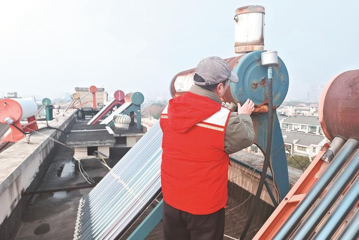 据了解,世纪名苑一期、二期总建筑面积15.27万平方米,总户数1332户,均为多层住宅,于2005年6月首期交付,是平湖市首个业委会自治小区。小区建成年代较久,不少楼顶太阳能热水器出现老化、锈蚀、破损等问题,极端天气下存在掉落风险,给居民出行和生活带来安全隐患。