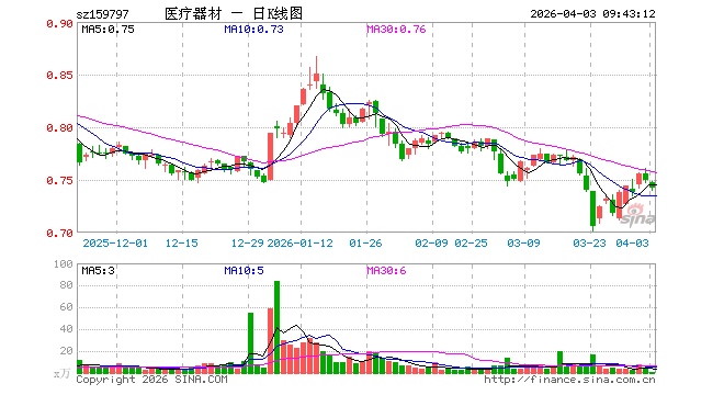 4月3日,医疗器械ETF汇添富(159797)开盘跌0.27%,报0.747元。医疗器械ETF汇添富(159797)重仓股方面,迈瑞医疗开盘跌0.26%,联影医疗跌0.64%,鱼跃医疗跌0.27%,新产业跌0.63%,爱美客涨0.00%,惠泰医疗跌0.50%,乐普医疗跌0.72%,福瑞医科涨0.89%,英科医疗涨1.78%,华大基因跌0.32%。