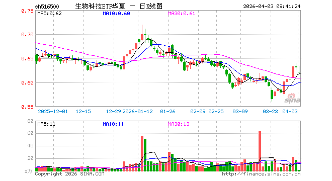 生物科技ETF华夏(516500)业绩比较基准为中证生物科技主题指数收益率,管理人为华夏基金管理有限公司,基金经理为李俊,成立(2021-03-04)以来回报为-36.82%,近一个月回报为2.63%。