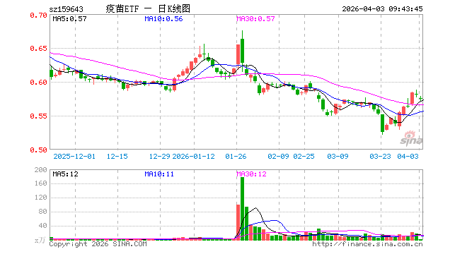 疫苗ETF国泰(159643)开盘跌1.03%,重仓股复星医药跌1.22%,长春高新跌0.43%
