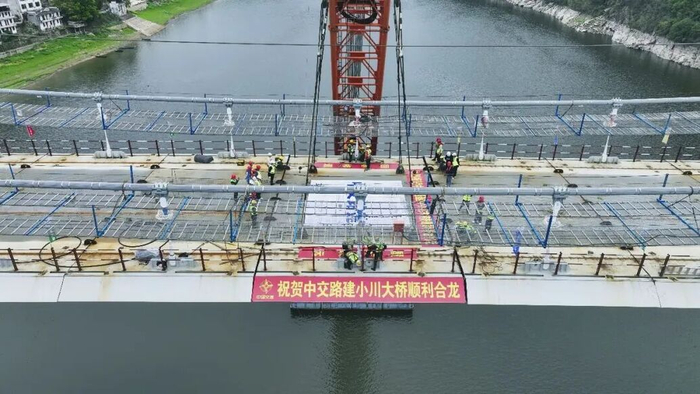 4月2日,随着最后一片钢箱梁缓缓起吊,精准完成对接,全省首座隧道锚式悬索桥——歙县新安江小川大桥顺利合龙,迈出了建成通车的关键一步。