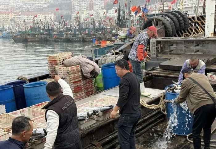 刚上岸的鲜鱼很快被分装完毕,运往各大农贸市场、商超及餐饮门店。船东刘界意介绍:“现在的水温还有点凉,随着气温回升、鱼汛渐旺,后续捕捞量会持续增加,等到4月10日前后,一船大约能带回来上万斤。”