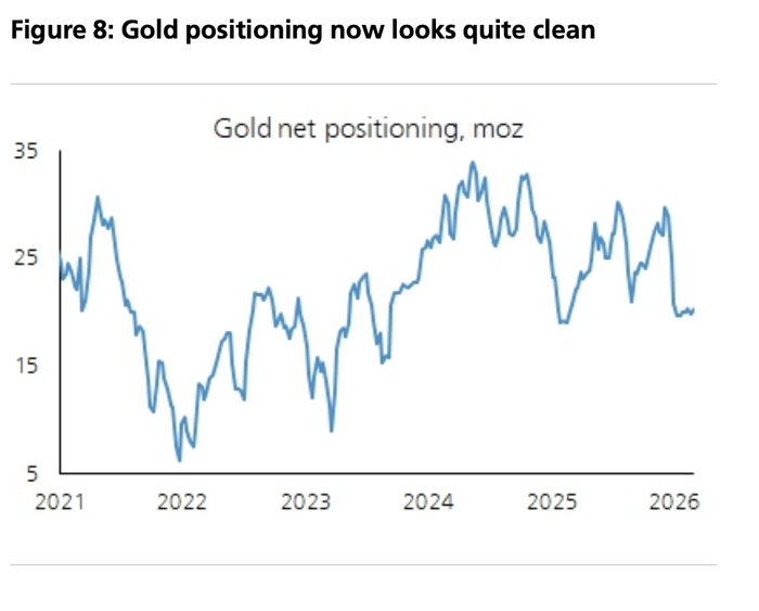 在这个框架下,报告给出的定价锚是:2026年金价年均5000美元、年底目标5600美元。它同时提到,投机仓位已经“更干净”,而长期参与者仍偏低配;如果回撤再出现,更接近一种“战略建仓窗口”,而不是趋势终结的信号。