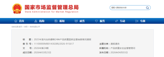 2025年室内加热器等24种产品质量国家监督抽查情况通报