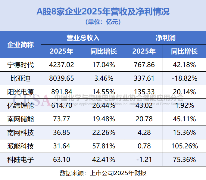 A股8家储能企业2025年财报盘点:营收、利润、出货量一览!