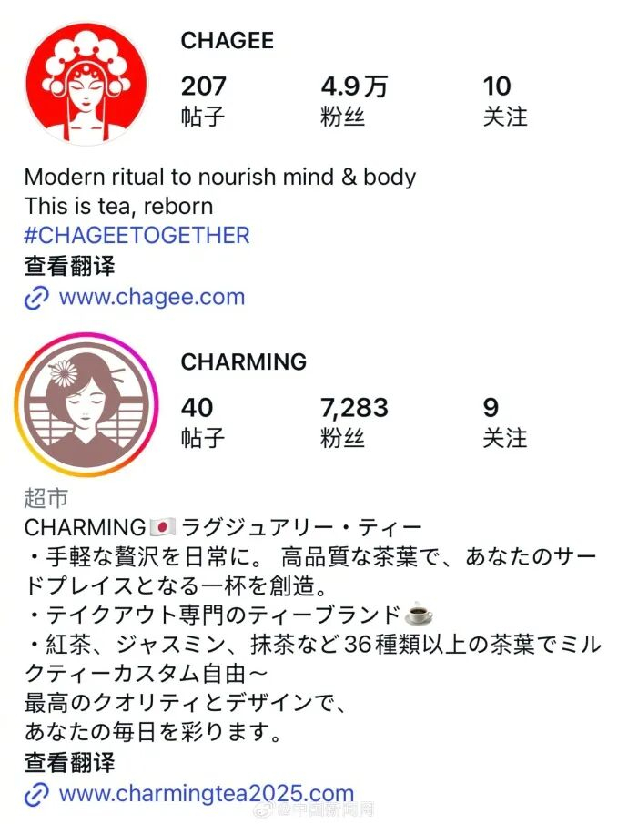 近日,有日本IP的网友发帖称,在日本大阪中崎町喝到一家新开的奶茶品牌Charming Tea Shop,有网友表示,该品牌从品牌图标、菜单到产品设计均涉嫌抄袭中国茶饮品牌霸王茶姬。有网友在社交媒体晒出对比图,认为该店图标到菜单,抄袭了CHAGEE(霸王茶姬)与霸王茶姬相似。
