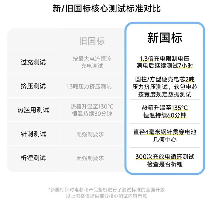 新国标测试标准更加严格,比如引入针刺试验;新增循环老化方面的专业检测,同时要求标明建议安全使用年限;推行产品唯一性编码管理,消费者可通过编码查询电池品牌等核心信息等。报道显示,该标准将于明年4月1日正式实施,也就是一年后企业必须按照新标准进行产品生产和销售。