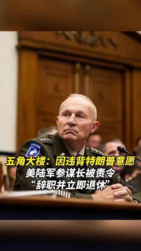 视频|五角大楼:因违背特朗普意愿 美陆军参谋长被责令 “辞职并立即退休”