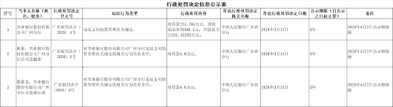 兴业银行广州分行被罚251.293万元:违反支付结算管理有关规定