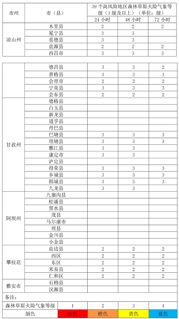 四川省气象台提醒,清明假期,甘孜州西南部和攀西地区西部南部降水较弱,午后到傍晚风力较大,森林草原火险气象等级较高,需加强火源管理和森林防火工作。