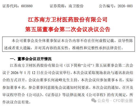 2026年3月31日,上交所主板上市公司南卫股份(603880.SH)发布了《关于董事兼财务负责人离任暨指定总经理代行财务负责人职责的公告》。公告显示,因个人职业发展规划调整及薪资不及预期,许晓先生申请辞去公司第五届董事会董事、董事会薪酬与考核委员会委员、提名委员会委员及财务负责人职务,辞职后不再担任公司任何职务。在董事会聘任新任财务负责人前,董事会指定公司总经理何凌峰先生代行财务负责人职责。