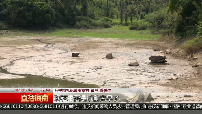 万宁市礼纪镇贡举村 农户 曾先生:我们那里本来是有两个小水库,但是它全部水都放干了,现在主要是以前太旱了,没办法,以前是有雨还可以,现在你看今年都没有雨的,它主要是那边水也过不来这里,所以就干旱成这样,(从什么时候开始干旱的)从过了(正月)十五那样。