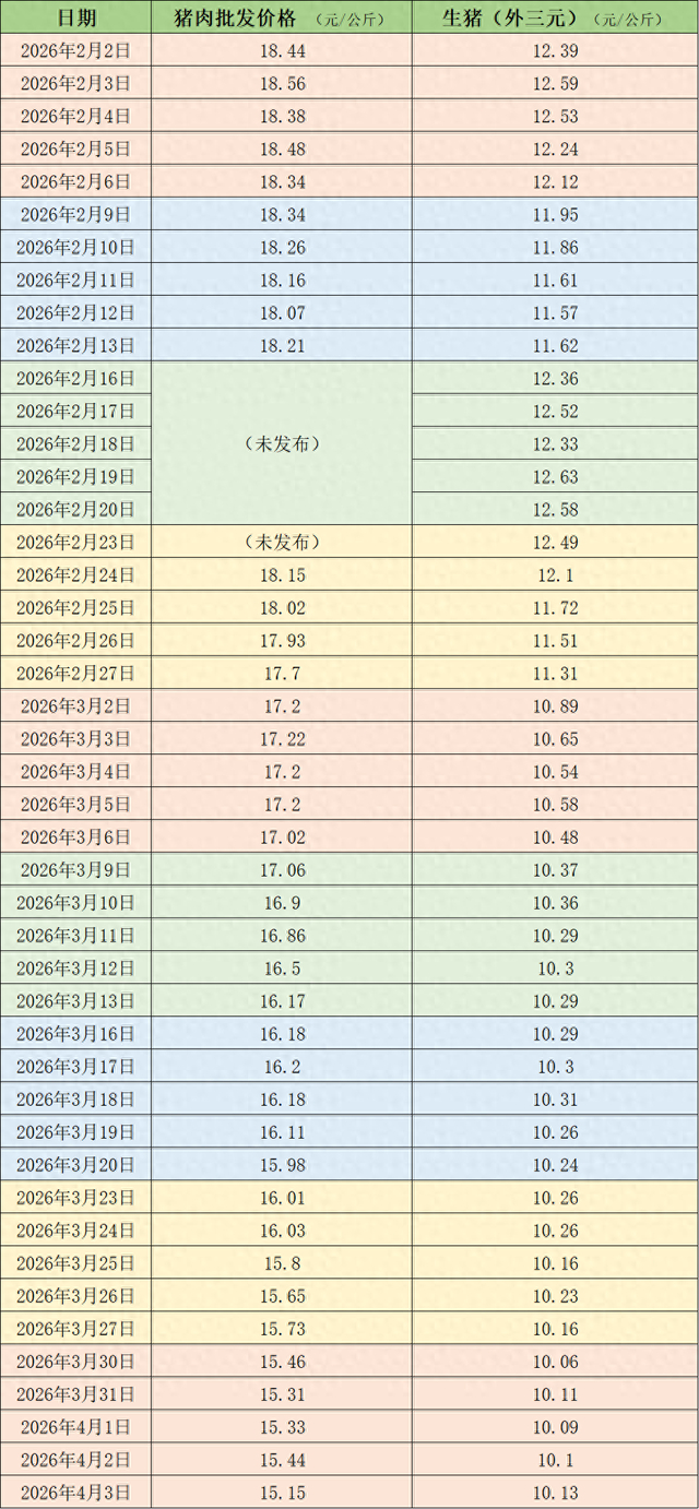 据农业农村部监测,4月3日,全国农产品批发市场猪肉平均价格为15.15元/公斤,与上周五(3月27日)的15.73元/公斤相比,下降3.7%。本周的平均价格为15.34元/公斤,与上周15.84元/公斤的均价相比,下降3.2%。