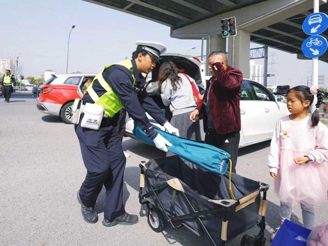 4月5日上午9时许,公园南门的嫩江路停车场停车位和嫩江路道路临时停车位就已接近饱和,杨浦公安交管支队四大队民警按照预案,在路口布置铁马,指挥入园车辆继续向前行驶至周边道路临时停车位停放。分布在军工路、白城路和民星路等沿线的执勤警力同步响应,加强现场引导,形成“多点联动、梯次分流”的疏导网络。