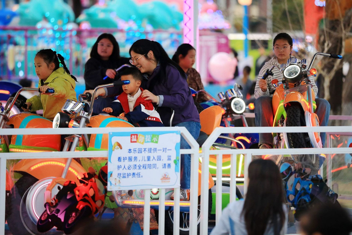 江苏淮安:清明假期首日 游乐园里人气旺