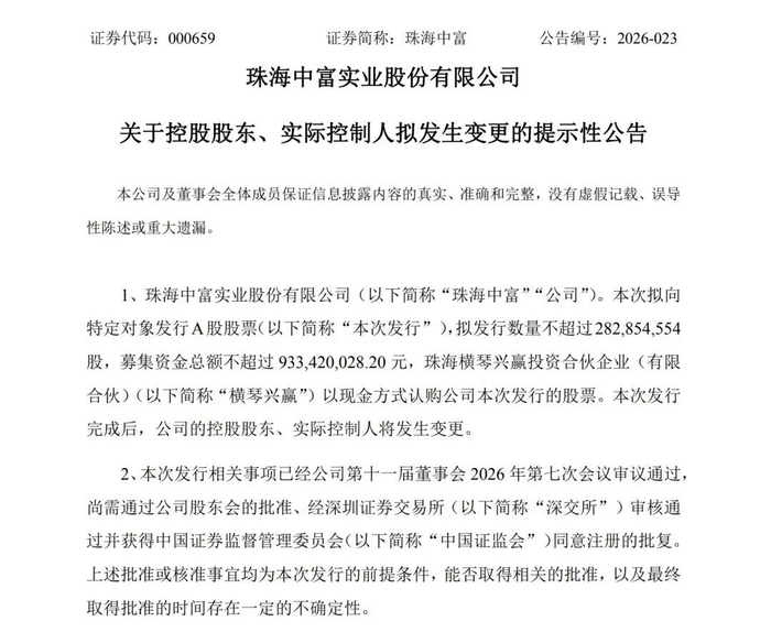 同日晚间,另一家A股公司珠海中富(000659)也发布公告宣布将要易主。