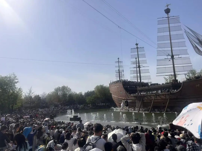 受持续火爆客流影响,4月4日、5日,万岁山武侠城连续启动限流措施。