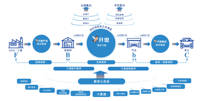 中国拥有一个庞大但高度分散的汽车后市场。凭借多年深耕该行业,开思时代积累了包含丰富行业洞察的庞大专有数据集。公司通过专有数据及包括AI、大数据分析和云原生基础设施等核心技术,率先推动中国汽车后市场数智化转型。通过将汽配识别、采购、订单履约及服务交付等核心环节进行数字化与智能化升级,促进上下游高效协同,同时大幅提升了全行业参与者的透明度、运营效率及规模化拓展潜力。