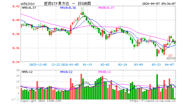 医药ETF易方达(512010)开盘涨0.27%,重仓股恒瑞医药涨0.23%,药明康德涨0.03%