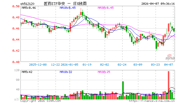 医药ETF华安(512120)开盘涨0.00%,重仓股药明康德涨0.03%,恒瑞医药涨0.23%