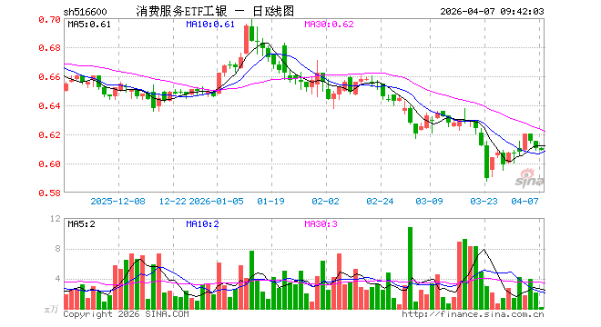 4月7日,消费服务ETF工银(516600)开盘涨0.00%,报0.610元。消费服务ETF工银(516600)重仓股方面,贵州茅台开盘涨0.00%,恒瑞医药涨0.23%,寒武纪跌0.26%,药明康德涨0.03%,中国平安涨0.09%,五粮液跌0.09%,伊利股份涨0.00%,招商银行跌0.03%,科大讯飞涨0.07%,中国电信涨0.00%。