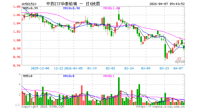 4月7日,中药ETF华泰柏瑞(561510)开盘跌0.20%,报0.987元。中药ETF华泰柏瑞(561510)重仓股方面,云南白药开盘跌0.23%,片仔癀涨0.00%,东阿阿胶涨0.05%,同仁堂涨0.04%,华润三九跌0.21%,吉林敖东涨0.46%,白云山跌0.17%,以岭药业涨0.00%,达仁堂涨0.27%,众生药业跌0.11%。