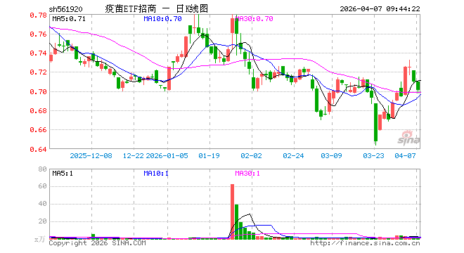 疫苗ETF招商(561920)开盘涨0.00%,重仓股智飞生物跌0.07%,沃森生物涨0.81%