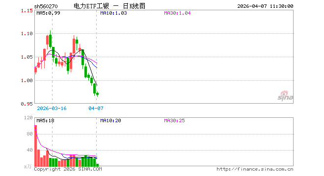 电力ETF工银(560270)业绩比较基准为中证全指电力公用事业指数收益率,管理人为工银瑞信基金管理有限公司,基金经理为张乐涛,成立(2026-02-11)以来回报为-3.03%,近一个月回报为-3.72%。