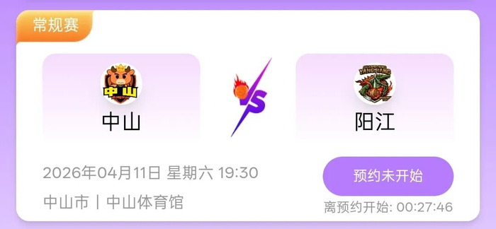 4月11日(周六),9场对决将率先打响,其中深圳与惠州的比赛调整至4月12日(周日)进行。常规赛第三轮所有场次票价统一为8.8元。票务预约系统将于4月7日(周二)上午10:00正式开放,截止时间为4月8日(周三)22:00。