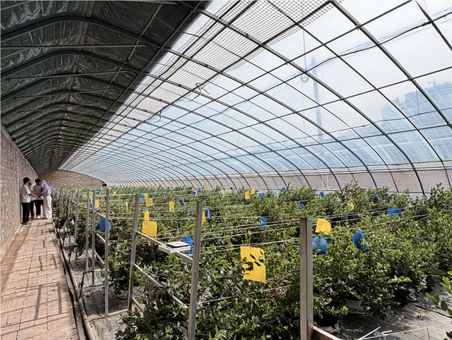 “2024年7月,我公司在水磨河村承包了80座日光温室,其中35座用于种植蓝莓,重点打造特色蓝莓种植基地。我们采用先进的环境调控与水肥一体化技术,实行有机基质无土盆栽,全程实行标准化、精细化科学管护,目前蓝莓已陆续进入采摘期。”神木市飞科新农村科技股份有限公司技术人员高春怀介绍。