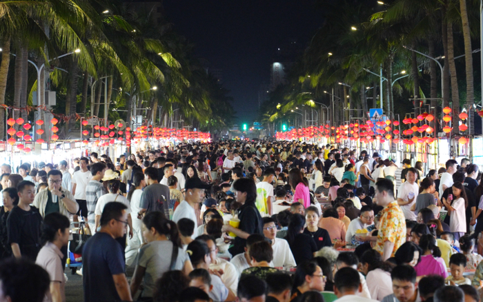 夜幕降临,海口夜间经济“活”力全开。海大南门夜市成为假期“流量担当”,烤生蚝、清补凉、海南粉等特色美食摊位人潮涌动,烟火气与美食香交融,尽显市井繁华。