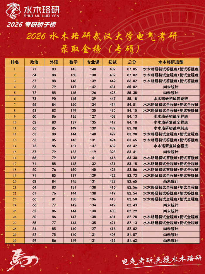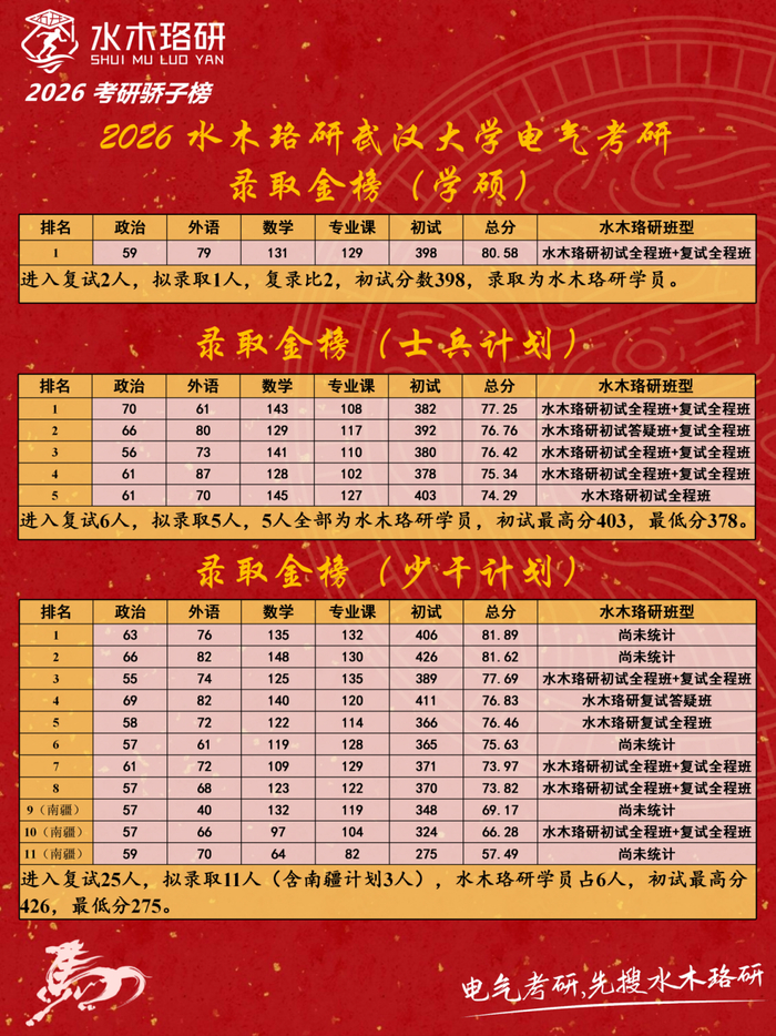 恭喜水木珞研团队近100名学员成功上岸武汉大学!