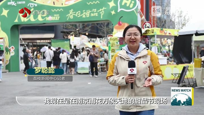 荔枝新闻中心记者罗聪懿说:“我现在是在南京雨花万象天地的甜品节现场。一走进这里,空气里都是甜甜的味道。大家一路走、一路逛、一路吃、一路买,开启一整天的美好。”