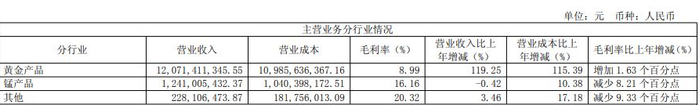分行业看,西部黄金期内黄金产品营收同比增长119.25%至约120.71亿元,毛利率较上年增加1.63个百分点至8.99%。同时,公司锰产品营收同比下滑0.42%至约12.41亿元,毛利率减少8.21个百分点。