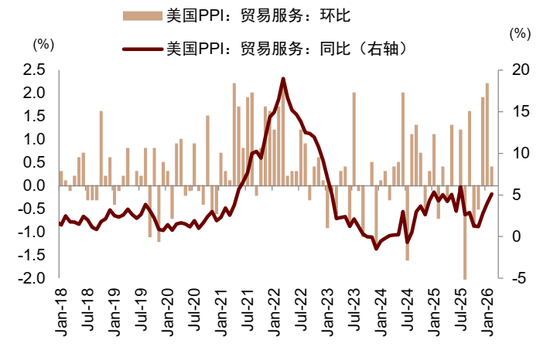 三是关税成本压力短期仍会继续向下游传导,推升核心商品价格。美国PPI贸易服务分项近期明显上涨,1月环比涨幅与疫情期间最高值2.2%持平。高频数据也显示二手车和新车价格可能走强,均会对核心商品通胀形成上行推力。