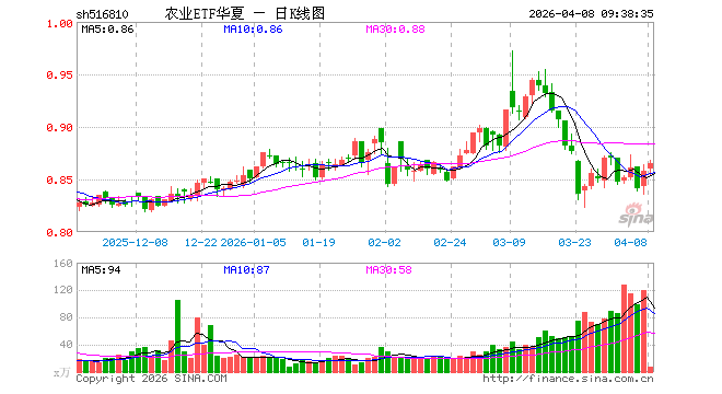 4月8日,农业ETF华夏(516810)开盘涨0.23%,报0.860元。农业ETF华夏(516810)重仓股方面,牧原股份开盘涨0.58%,温氏股份涨0.00%,海大集团涨0.48%,藏格矿业涨2.04%,盐湖股份跌1.18%,亚钾国际跌0.94%,正邦科技涨0.66%,新希望涨0.12%,梅花生物涨0.09%,扬农化工跌1.31%。