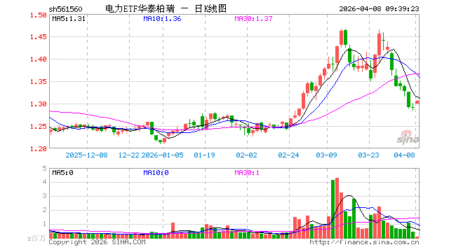 电力ETF华泰柏瑞(561560)开盘涨0.54%,重仓股长江电力涨0.15%,中国核电涨0.34%