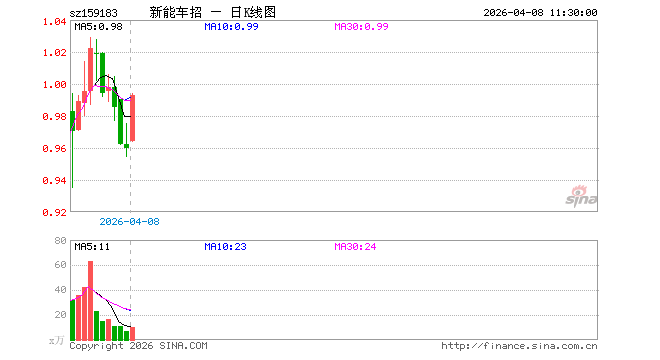 新能源车ETF招商(159183)业绩比较基准为中证新能源汽车指数收益率,管理人为招商基金管理有限公司,基金经理为廖裕舟,成立(2026-03-13)以来回报为-3.58%。