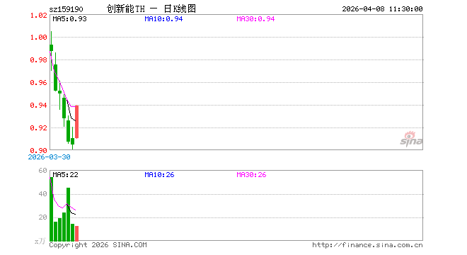 4月8日,截止午间收盘,创业板新能源ETF天弘(159190)涨3.76%,报0.939元,成交额1164.58万元。创业板新能源ETF天弘(159190)重仓股方面,宁德时代截止午盘涨2.70%,阳光电源涨3.53%,汇川技术涨3.18%,亿纬锂能涨6.02%,先导智能涨6.08%,迈为股份涨6.90%,欣旺达涨3.37%,捷佳伟创涨4.79%,罗博特科涨8.83%,湖南裕能涨2.82%。