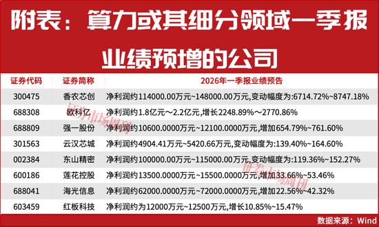 目前,已有多家算力或算力细分领域概念股发布了一季报业绩预喜公告,凸显出行业强劲的发展韧性(见附表)。