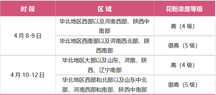 国家卫生健康委、中国气象局4月7日18时联合发布未来一周花粉浓度预报服务提示: