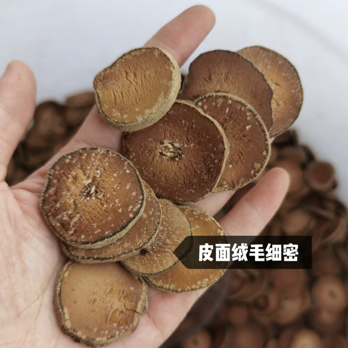 烘干后,陈放多年再出售,等到出售时才压缩、切片状、包装,送到你的手中。