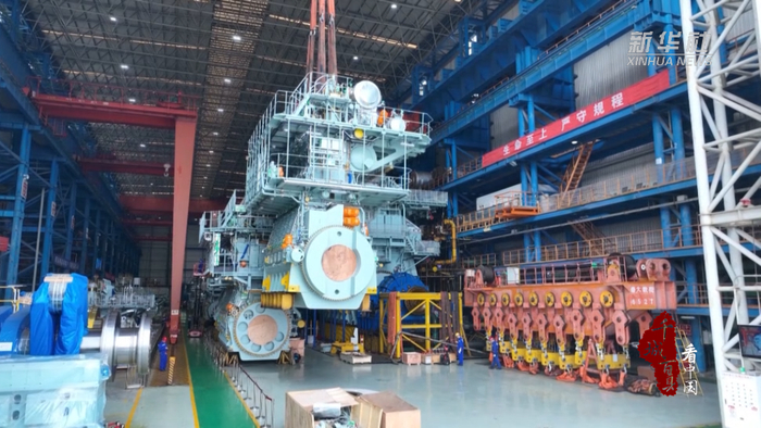 近年来,中船北海造船与中船发动机深度协同,通过优化设计衔接,实现氨燃料舱与主机供气系统无缝对接,形成低碳零碳船舶“青岛方案”。