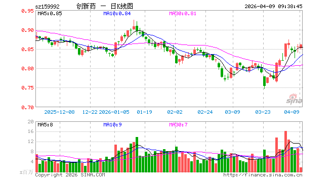 4月9日,创新药ETF银华(159992)开盘跌0.47%,报0.852元。创新药ETF银华(159992)重仓股方面,药明康德开盘跌0.01%,恒瑞医药跌0.92%,华东医药跌0.44%,复星医药跌0.60%,科伦药业跌0.52%,百济神州跌0.82%,长春高新跌0.69%,康龙化成跌0.66%,泰格医药跌0.57%,艾力斯跌1.14%。