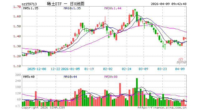 稀土ETF富国(159713)开盘跌1.08%,重仓股北方稀土跌1.35%,金风科技跌1.76%